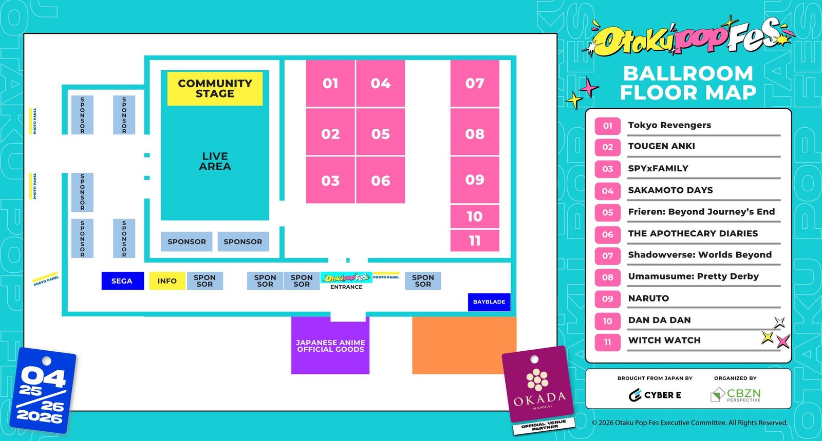 The event will utilize two venues within Okada Manila. The Ballroom, which will host anime exhibition booths and stage programs, and Cove Manila, which will serve as the area for cosplay activities, Japanese pop culture showcases, and evening concerts.